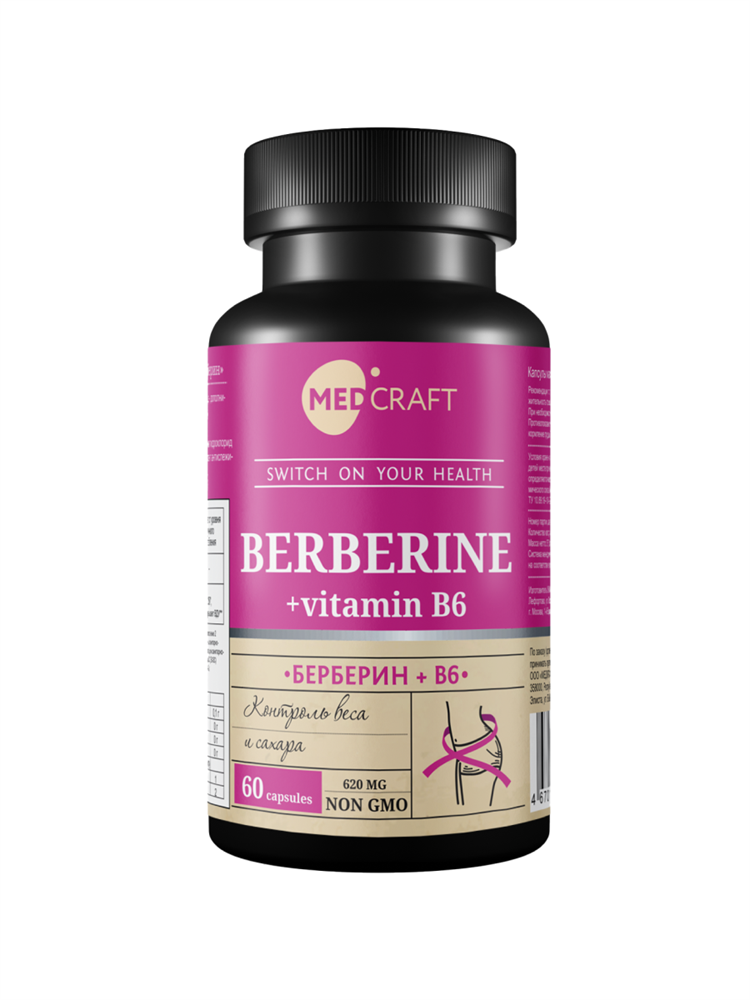 Основные преимущества Берберина В6: 1. Улучшение метаболизма: Берберин способствует более эффективному расщеплению углеводов и жиров, что помогает поддерживать нормальный уровень сахара в крови и снижать риск развития инсулинорезистентности. 2. Поддержка сердечно-сосудистой системы: Благодаря своим антиоксидантным свойствам, берберин помогает снизить уровень триглицеридов и холестерина в крови, тем самым уменьшая нагрузку на сердце. 3. Энергетический заряд: Витамин B6 усиливает процессы обмена веществ, улучшая усвоение белков и аминокислот, что обеспечивает стабильный поток энергии на протяжении всего дня. 4. Укрепление иммунитета: Сочетание берберина и витамина B6 повышает защитные функции организма, делая вас менее уязвимым к инфекциям. 5. Поддержка нервной системы: Витамин B6 играет ключевую роль в выработке нейротрансмиттеров, таких как серотонин и дофамин, что улучшает настроение и помогает бороться со стрессом.