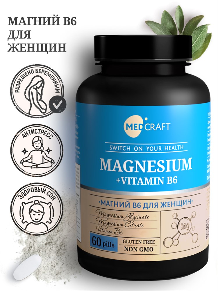 Представляем новый комплекс от MeдКрафт - органический магний глицинат и б6 для женщин это 3 вида магния: магний цитрат, хелат магния бисглицинат и оксид.