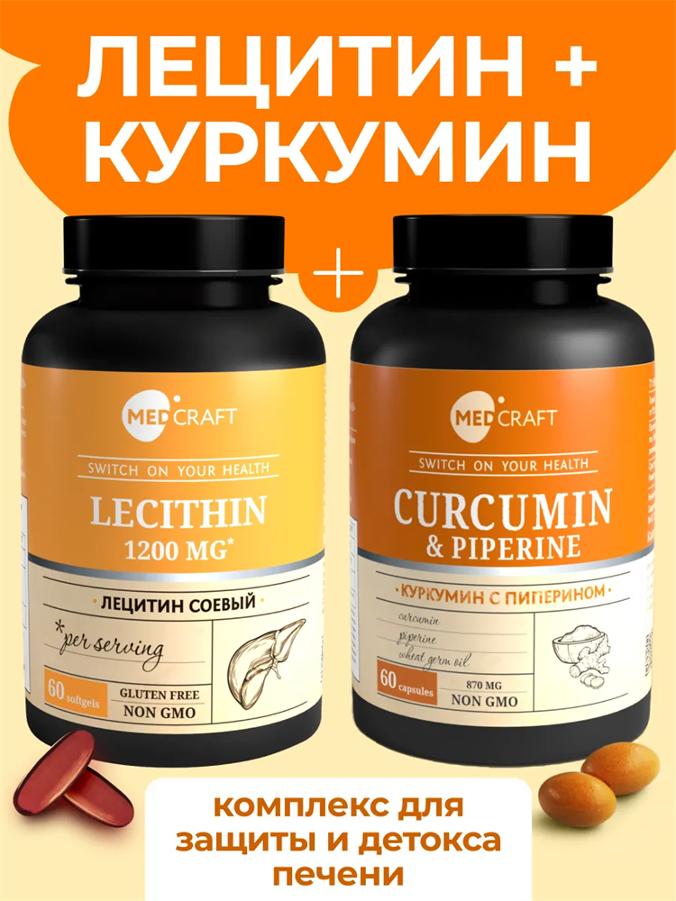 Комплекс с курумином с пиперином в капсулах и лецитином в капсулах — это инновационная добавка, сочетающая два мощных ингредиента, известных своими благоприятными свойствами для организма.