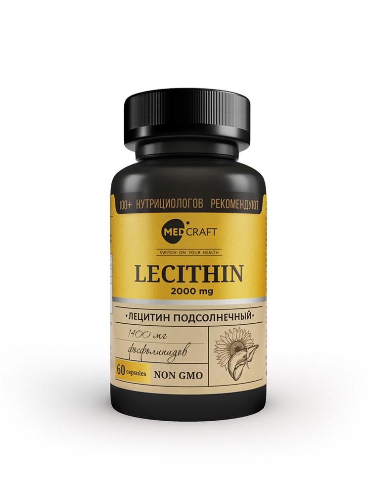 Лецитин подсолнечный в капсулах MeдКрафт это комплекс фосфолипидов — ключевой строительный материал клеточных мембран, отвечающий за их целостность и пластичность, что является основой правильного функционирования всех клеток организма