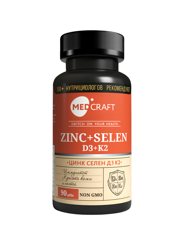MedCraft Цинк Селен с витаминами D3 K2, комплекс для иммунитета и красоты, 90 таблеток - это уникальное сочетание цинка, селена, витамина D3 и K2, которое поможет вам поддерживать здоровье и красоту вашего организма.